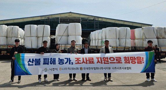 [NWS¹æ¼Û=Çѽ¸ñ ±âÀÚ]Àü¶ó³²µµ ³ªÁֽà Ãà»ê´ÜüµéÀÌ °æºÏÁö¿ª »êºÒ ÇÇÇØ Ãà»ê³ó°¡¿¡ °¡Ãà ¸ÔÀÌÀÎ Á¶»ç·á¸¦ Áö¿øÇÏ°í ³ª¼¹´Ù. ÀÌ´Þ ÃÊ 3õ¸¸¿ø »ó´ç ½Äǰ(´©·îÁö¡¤±è) Áö¿ø¿¡ ÀÌÀº ±¸È£ Ȱµ¿À¸·Î ÀÌÀç¹Îµé¿¡°Ô Èñ¸ÁÀÇ ¼Õ±æÀ» ÀüÇß´Ù. 14¡¦
