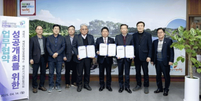 [»çȸ] Á¦Ãµ½Ã-Á¦Ãµ´Ü¾ç»ó°øÈ¸ÀǼÒ-Á¦Ãµ½Ã±â¾÷ÀÎÇùÀÇȸ, 2025 Á¦Ãµ±¹Á¦ÇѹæÃµ¿¬¹°»ê¾÷¿¢½ºÆ÷ ¼º°øÀ» À§ÇÑ ¾÷¹«Çù¾à ü°á |2025. 04.14