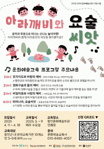[NWS¹æ¼Û=Çѽ¸ñ ±âÀÚ] ÇԾȹ®È­¿¹¼úȸ°üÀº (Àç)°æ³²¹®È­¿¹¼úÁøÈï¿ø ÁÖ°ü ¡®2025 À¯¾Æ¹®È­¿¹¼ú±³À°Áö¿ø»ç¾÷¡¯ÀÇ ÀÏȯÀ¸·Î ¿î¿µÇÏ´Â À¯¾Æ¹®È­¿¹¼ú±³À° ÇÁ·Î±×·¥ ¡®¾Æ¶ó±úºñ¿Í ¿ä¼ú¾¾¾Ñ¡¯ÀÇ Âü¿© ±â°üÀ» ¸ðÁýÇÑ´Ù°í ¹àÇû´Ù. À̹ø ÇÁ·Î±×·¥¡¦