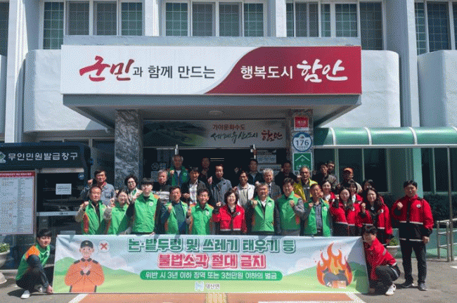 [NWS¹æ¼Û=Çѽ¸ñ ±âÀÚ]ÇԾȱº ´ë»ê¸éÀº Áö³­ 11ÀÏ ´ë»ê¸é ÀÏ´ë¿¡¼­ ¡®»êºÒ ¿¹¹æ Ä·ÆäÀΡ¯À» ½Ç½ÃÇß´Ù. Çà»ç¿¡´Â ÀÌÀå´Ü ¹× ÀÚÀ²¹æÀç´Ü µî 30¿© ¸íÀÌ Âü¼®ÇßÀ¸¸ç ³í¡¤¹çµÎ··, ¾²·¹±â ºÒ¹ý¼Ò°¢ ±ÝÁö ¹× ÀÔ»êÅëÁ¦±¸¿ª¿¡ ´ëÇØ ¼³¸íÇϰí, »ê¡¦