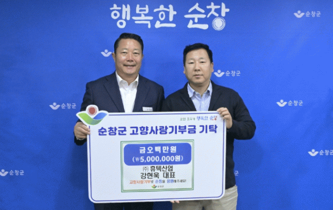 [NWS¹æ¼Û=Çѽ¸ñ ±âÀÚ]¼øÃ¢±ºÀº 14ÀÏ (ÁÖ)ÈÞÅØ»ê¾÷ÀÇ °­Çö¿í ´ëÇ¥°¡ °íÇâ»ç¶û±âºÎ±Ý 500¸¸¿øÀ» ±âŹÇß´Ù°í ¹àÇû´Ù. À̳¯ ±âŹ½Ä¿¡´Â ÃÖ¿µÀÏ ¼øÃ¢±º¼ö¿Í °­Çö¿í ´ëÇ¥¸¦ ºñ·ÔÇØ ³²ºÎ´ëÇб³ ÃÖ½Â½Ä ±³¼ö µî °ü°èÀÚµéÀÌ Âü¼®ÇØ ³ª´®ÀÇ ¶æÀ» ¡¦