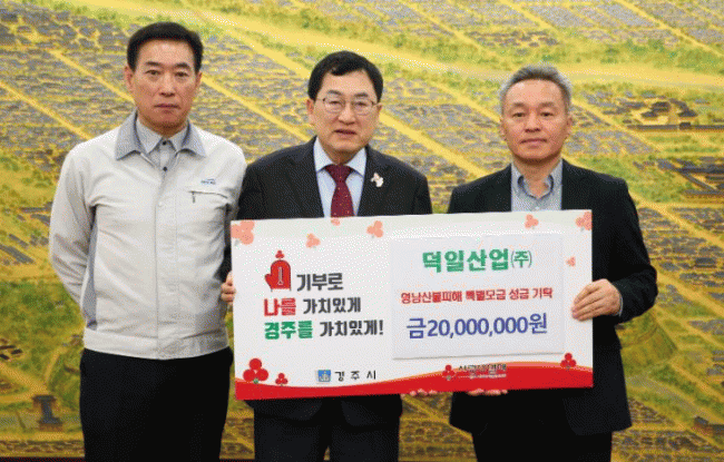 [NWS¹æ¼Û=Çѽ¸ñ ±âÀÚ]°æÁֽà °­µ¿¸é¿¡ À§Ä¡ÇÑ ÀÚµ¿Â÷ ºÎǰ ¿ì·®±â¾÷ÀÎ ´öÀÏ¿ÀÅä¸ðƼºê(ÁÖ) ´Â Áö³­ 10ÀÏ ÁÖ³«¿µ °æÁÖ½ÃÀåÀ» ¿¹¹æÇϰí, ÃÖ±Ù ¹ß»ýÇÑ ¿µ³²Áö¿ª »êºÒ ÇÇÇØ Á¶±â º¹±¸¸¦ À§ÇØ ¼º±Ý 2õ¸¸ ¿øÀ» ±âºÎÇß´Ù. À̹ø ±âºÎ´Â »êºÒ¡¦