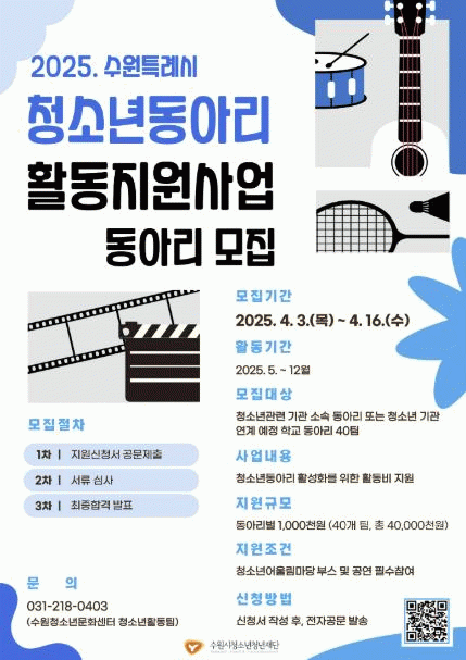 [»çȸ] ¼ö¿ø½Ãû¼Ò³âû³âÀç´Ü, û¼Ò³â µ¿¾Æ¸® ¸ðÁý¡¦È°µ¿ºñ Áö¿ø |2025. 04.14