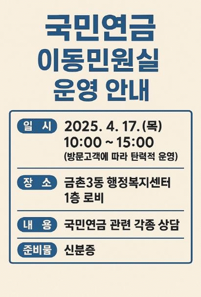 [»çȸ] ÆÄÁֽà ±ÝÃÌ3µ¿¤Ñ±¹¹Î¿¬±Ý°ø´Ü, '±¹¹Î¿¬±Ý À̵¿¹Î¿ø½Ç' ¿î¿µ |2025. 04.14