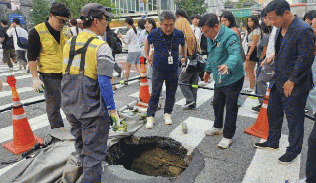 [NWS¹æ¼Û=Çѽ¸ñ ±âÀÚ]¸¶Æ÷±¸´Â ¿¹±âÄ¡ ¸øÇÑ ¶¥²¨Áü(½ÌũȦ) »ç°í¸¦ ¼±Á¦ÀûÀ¸·Î ¿¹¹æÇϱâ À§ÇØ ¼û¾îÀÖ´Â °øµ¿(ÍöÔ×) º¸¼ö¿Í µµ·Î °ü¸®¿¡ ÃÑ·ÂÀ» ´ÙÇϰí ÀÖ´Ù. °øµ¿(ÍöÔ×)Àº µµ·Î ¾Æ·¡ Áö¹ÝÀÌ ºñ¾î ÀÖ´Â »óÅ·Π±×´ë·Î ¹æÄ¡ÇÏ¸é ´ëÇü ÀÎ¸í¡¦