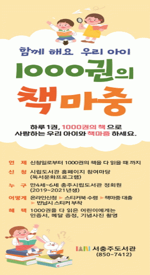 [NWS¹æ¼Û=Çѽ¸ñ ±âÀÚ]ÃæÁֽà ¼­ÃæÁÖµµ¼­°üÀÌ 4¿ù 15ÀϺÎÅÍ ¹ÌÃëÇÐ ¾Æµ¿À» ´ë»óÀ¸·Î ¡®1,000±ÇÀÇ Ã¥¸¶Áß¡¯ ÇÁ·Î±×·¥À» ÁøÇàÇÑ´Ù. ½Ã´Â 2024³â ½Ç½ÃÇÑ ¡®365ÀÏ Ã¥¸¶Áß¡¯»ç¾÷ÀÌ ¼­ÃæÁÖµµ¼­°ü À̿밴µéÀÇ ³ôÀº °ü½É°ú Å« È£ÀÀÀ» ¾ò¾î, ¿ÃÇØ¡¦