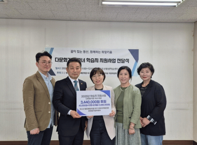 [NWS¹æ¼Û=Çѽ¸ñ ±âÀÚ]¹ý¹«ºÎ û¼Ò³â ¹üÁË¿¹¹æÀ§¿ø ´ë±¸¡¤°æºÏÁö¿ªÇùÀÇȸ ÇѸ¶À½Áö¿øÀ§¿øÈ¸´Â Áö³­ 10ÀÏ ´Ù¹®È­°¡Á¤ ÀÚ³à ÇнÀÁö Áö¿øÀ» À§ÇÑ ÈÄ¿ø±Ý 344¸¸ ¿øÀ» ¼ö¼º±¸°¡Á·¼¾ÅÍ¿¡ Àü´ÞÇß´Ù. Àü´Þ½Ä¿¡ Âü¿©ÇÑ Á¤¹®±³ ¼ö¼®ºÎÀ§¿øÀåÀº ¡°Áö¡¦