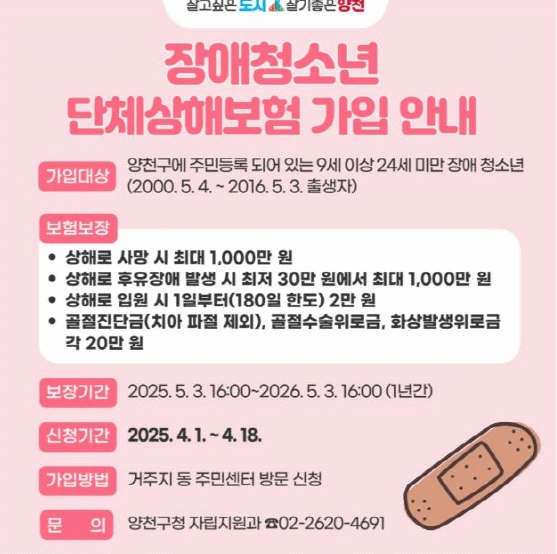 [»çȸ] ¾çõ±¸, ¼ºÀå±â Àå¾Öû¼Ò³â »óÇØº¸Çè Áö¿ø¡¦ÃÖ´ë 1õ¸¸ ¿ø º¸Àå |2025. 04.13