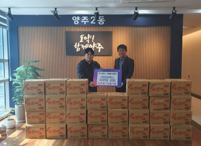 [NWS¹æ¼Û=Çѽ¸ñ ±âÀÚ]¾çÁֽà ¾çÁÖ2µ¿ÀÌ Áö³­ 11ÀÏ °ü³» ¸¸¼Ûµ¿¿¡ ¼ÒÀçÇÑ ¢ß¸íǰÀ̾ØÁö¿¡¼­ ¾î·Á¿î ÀÌ¿ô¿¡°Ô Àü´ÞÇØ´Þ¶ó¸ç ¶ó¸é 30¹Ú½º(ȯ°¡¾× 80¸¸ ¿ø »ó´ç)¸¦ ±âºÎÇß´Ù°í ¹àÇû´Ù. À̳¯ ±âŹµÈ ¶ó¸éÀº °æ±â »çȸº¹Áö°øµ¿¸ð±Ýȸ¸¦ ÅëÇØ ¡¦