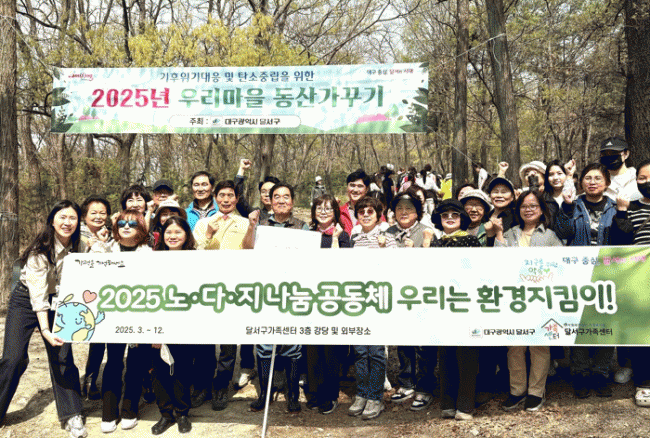[NWS¹æ¼Û=Çѽ¸ñ ±âÀÚ]´ë±¸ ´Þ¼­±¸°¡ ¿Í·æ»ê ÀÚ¶ô±æ¿¡¼­ ¡®³ë´ÙÁö ³ª´®°øµ¿Ã¼¡¯ »ç¾÷ Âü¿©ÀÚ¿Í Áö¿ª ÁֹΠ110¿© ¸íÀÌ ÇÔ²²ÇÏ´Â ¡®Æí¹é³ª¹« 500±×·ç ½É±â Çà»ç¡¯¸¦ ¼ºÈ²¸®¿¡ °³ÃÖÇß´Ù°í 13ÀÏ ¹àÇû´Ù. ¡®³ë´ÙÁö ³ª´®°øµ¿Ã¼¡¯´Â ¡®³ëÀÎ?´Ù¡¦
