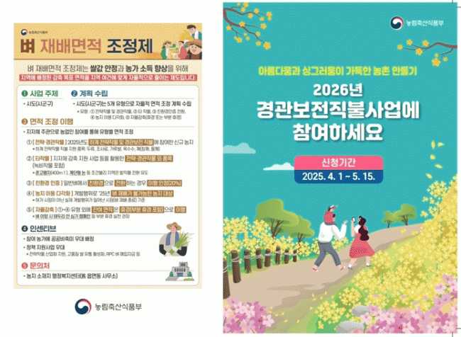 [NWS¹æ¼Û=Çѽ¸ñ ±âÀÚ]Àü¶ó³²µµ´Â ¾Æ¸§´ä°í ÄèÀûÇÑ ³óÃÌ °æ°ü Á¶¼ºÀ» À§ÇØ ÃßÁøÇÏ´Â °æ°üº¸ÀüÁ÷ºÒÁ¦ÀÇ 2026³â »ç¾÷ ½ÅûÀ» ¿À´Â 5¿ù 15ÀϱîÁö ÇÑ ´Þ º¸¸§¿©°£ Á¢¼öÇÑ´Ù°í ¹àÇû´Ù. °æ°üº¸ÀüÁ÷ºÒÁ¦´Â ¸¶À»°æ°üº¸ÀüÃßÁøÀ§¿øÈ¸¸¦ ±¸¼ºÇØ ½ÃÀ塦