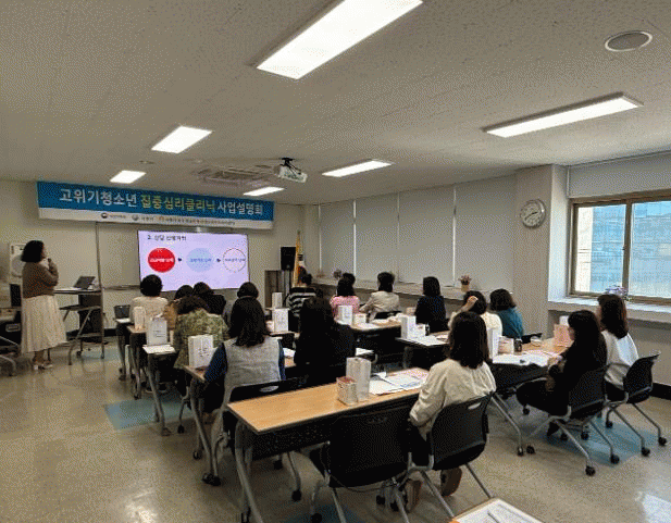 [NWS¹æ¼Û=Çѽ¸ñ ±âÀÚ]»çõ½Ã º¹Áö¡¤Ã»¼Ò³âÀç´Ü ¼Ò¼Ó û¼Ò³â»ó´ãº¹Áö¼¾ÅÍ´Â °ü³» ÃÊ¡¤Áß¡¤°íµîÇб³ Àü¹®»ó´ã(±³)»ç¸¦ ´ë»óÀ¸·Î ¡®°íÀ§±âû¼Ò³â ÁýÁ߽ɸ®Å¬¸®´Ð¡¯ »ç¾÷ ¼³¸íȸ¸¦ °³ÃÖÇß´Ù°í 11ÀÏ ¹àÇû´Ù. À̹ø ¡®°íÀ§±âû¼Ò³â ÁýÁ߽ɸ®Å¬¡¦