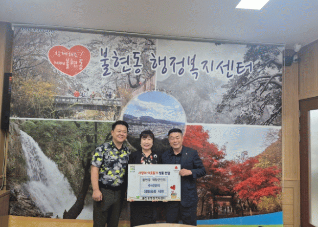 [NWS¹æ¼Û=Çѽ¸ñ ±âÀÚ]µ¿µÎõ½Ã ºÒÇöµ¿ ÀçÇⱺÀÎȸ´Â Áö³­ 18ÀÏ ºÒÇöµ¿ ÇàÁ¤º¹Áö¼¾Å͸¦ ¹æ¹®ÇØ Ãß¼® ¸íÀýÀ» ¸Â¾Æ °ü³» Ãë¾à°èÃþÀ» À§ÇØ ¼¤Çª, ¸°½º, ¼¼Á¦ µî »ýȰ¿ëǰ ¼¼Æ® 31¹Ú½º¸¦ ±âºÎÇß´Ù. Á¤ÀÇ±Ç È¸ÀåÀº ¡°ÀÌ¿ô¿¡°Ô µµ¿òÀÌ µÇ°íÀÚ ¡¦