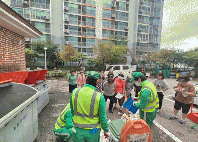 [NWS¹æ¼Û=Çѽ¸ñ ±âÀÚ]¼ö¿øÆ¯·Ê½Ã ÆÈ´Þ±¸ È­¼­2µ¿ÀÌ °øµ¿ÁÖÅà »ýȰÆó±â¹° »ùÇøµÀ» Áֹΰú ÇÔ²² ÁøÇàÇÏ¸ç ¿Ã¹Ù¸¥ ºÐ¸®¹èÃâ ¹®È­ È®»ê¿¡ ³ª¼¹´Ù. È­¼­2µ¿Àº 9¿ù ÇÑ ´Þ µ¿¾È °ü³» °øµ¿ÁÖÅà 17°³ ´ÜÁö¸¦ ´ë»óÀ¸·Î »ýȰÆó±â¹° »ùÇøµÀ» ½Ç½Ã¡¦
