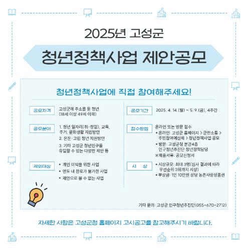 [»çȸ] °í¼º±º, û³âÁ¤Ã¥»ç¾÷ Á¦¾È °ø¸ðÀü °³ÃÖ |2025. 04.11