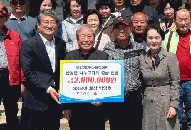 [NWS¹æ¼Û=Çѽ¸ñ ±âÀÚ]2025³â 4¿ù 11ÀÏ, GS¸ð¾Æ ¹Ú¿µÈ£ ȸÀåÀÌ °íÇâÀÎ ±¸·Ê±º »êµ¿¸é Áö¿ª»çȸº¸ÀåÇùÀÇü¿¡ 200¸¸ ¿øÀ» ÁöÁ¤ ±âŹÇϸç, Áö¿ª º¹Áö ÁõÁøÀ» À§ÇÑ ÈÄ¿ø¿¡ ³ª¼¹´Ù. À̹ø ±âºÎ´Â »êµ¿¸éÀÇ º¹Áö Çâ»ó°ú ¡®³ª´©°í °¡°Ô¡¯ ¿î¿µ¿¡¡¦