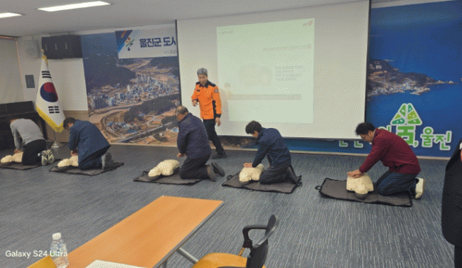 [NWS¹æ¼Û=Çѽ¸ñ ±âÀÚ]¿ïÁø±º ¿ïÁøÀ¾¿¡¼­´Â Áö³­ 4¿ù 10ÀÏ ÀÌÀåÇùÀÇȸ ȸ¿ø ¹× À¾»ç¹«¼Ò Á÷¿øÀ» ´ë»óÀ¸·Î ½ÉÆó¼Ò»ý¼ú(CPR) ±³À°À» ½Ç½ÃÇß´Ù. ±³À°Àº ¿ïÁø¼Ò¹æ¼­ ÃÖ¼ºÁØ ¼Ò¹æÀåÀ» °­»ç·Î ÃʺùÇÏ¿© ½ÉÁ¤Áö ¹ß»ý ½Ã Ãʱ⠴ëÀÀ ´É·ÂÀ» Çâ»ó¡¦