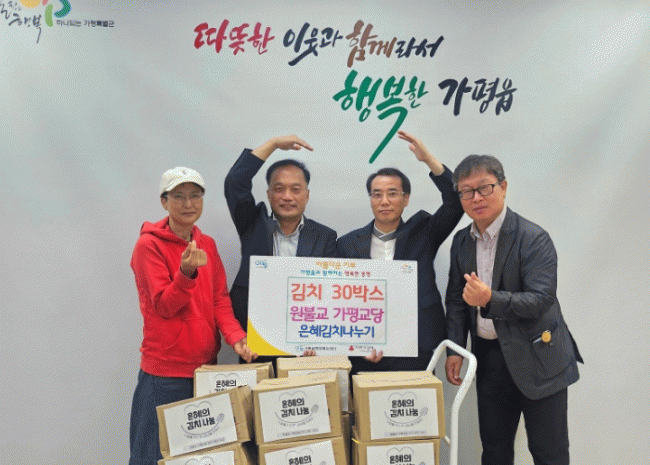 [NWS¹æ¼Û=Çѽ¸ñ ±âÀÚ]Ãß¼®À» ¾ÕµÎ°í ¿øºÒ±³ °¡Æò±³´çÀÌ Áö¿ª »çȸ¸¦ À§ÇÑ µû¶æÇÑ ³ª´®¿¡ ³ª¼¹´Ù. ¿øºÒ±³ °¡Æò±³´çÀº Áö³­ 17ÀÏ °¡ÆòÀ¾ ÇàÁ¤º¹Áö¼¾Å͸¦ ¹æ¹®ÇØ Ãë¾à°èÃþÀ» µ½±â À§ÇÑ ±èÄ¡ 30¹Ú½º¸¦ ±âŹÇß´Ù. ±èÁø±³ ±³¹«´Â ¡°°¡Æò Áö¿ª¡¦