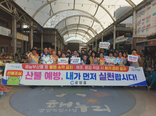 [NWS¹æ¼Û=Çѽ¸ñ ±âÀÚ]±¤¾çÀ¾Àº 11ÀÏ, ±¤¾çÀ¾ ³²¡¤¿© ÀÇ¿ë¼Ò¹æ´ë¿ø°ú À¾»ç¹«¼Ò Á÷¿ø 30¸íÀÌ ±¤¾çÀ¾ 5ÀÏ ½ÃÀåÀ» ã¾Æ »êºÒ¿¡ ´ëÇÑ °æ°¢½ÉÀ» °íÃëÇÏ°í ¿¹¹æ ¼öÄ¢À» È«º¸Çϱâ À§ÇØ »êºÒ ¿¹¹æ Ä·ÆäÀÎÀ» Àü°³Çß´Ù°í ¹àÇû´Ù. À̹ø Ä·ÆäÀÎÀº ¡°¡¦