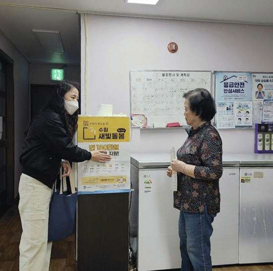 [NWS¹æ¼Û=Çѽ¸ñ ±âÀÚ]¼ö¿ø½Ã ÆÈ´Þ±¸ È­¼­1µ¿ ÇàÁ¤º¹Áö¼¾ÅÍ´Â Áö³­ 3¿ù ¸»ºÎÅÍ 4¿ù ÃʱîÁö ¡®¼ö¿ø»õºûµ¹º½(´©±¸³ª)»ç¾÷¡¯ÀÇ ÀÎÁöµµ¸¦ ³ôÀ̱â À§ÇØ Áö¿ª»çȸ¸¦ ´ë»óÀ¸·Î ÁýÁß È«º¸ Ȱµ¿À» Àü°³Çß´Ù. À̹ø È«º¸´Â È­¼­1µ¿ ÇàÁ¤º¹Áö¼¾ÅÍ¿Í ¡¦