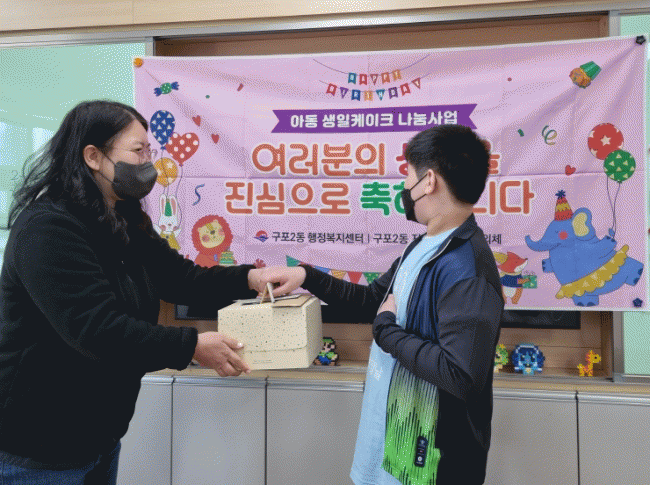 [NWS¹æ¼Û=Çѽ¸ñ ±âÀÚ]ºÎ»ê ºÏ±¸ ±¸Æ÷2µ¿ ÇàÁ¤º¹Áö¼¾ÅÍ´Â Áö³­ 9ÀÏ µ¿ Áö¿ª»çȸº¸ÀåÇùÀÇü°¡ »ýÀÏÀ» ¸ÂÀº Ãë¾à°èÃþ ¾Æµ¿¿¡°Ô ÄÉÀÌÅ©¿Í »ýÀϼ±¹°, ¼ÕÆíÁö¸¦ Àü´ÞÇß´Ù°í ¹àÇû´Ù. ?¿À´ÃÀº »ýÆÄ! Ãë¾à°èÃþ ¾Æµ¿ »ýÀϳª´® ÄÉÀÌÅ©? »ç¾÷Àº ±¸Æ÷¡¦