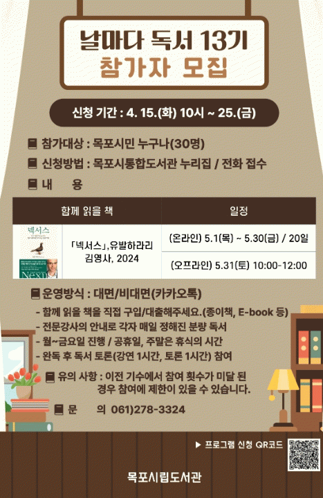 [»çȸ] ¸ñÆ÷½Ã¸³µµ¼­°ü,¡®³¯¸¶´Ù µ¶¼­¡¯13±â Âü°¡ÀÚ ¸ðÁý |2025. 04.11