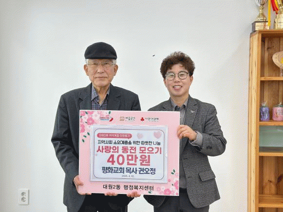 [»çȸ] ¿À»ê½Ã ´ë¿ø2µ¿, ÆòÈ­±³È¸ ±Ç¿ÀÁ¤ ¸ñ»ç »ç¶ûÀÇ µ¿Àü ¸ðÀ¸±â 40¸¸¿ø ÈÄ¿ø |2025. 04.11