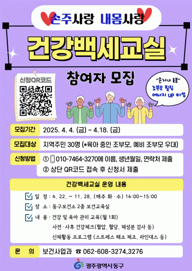[»çȸ] ±¤ÁÖ±¤¿ª½Ã µ¿±¸, ¼ÕÀÚ³à µ¹º½ Á¶ºÎ¸ð ´ë»ó °Ç°­¹é¼¼±³½Ç ¿î¿µ |2025. 04.11