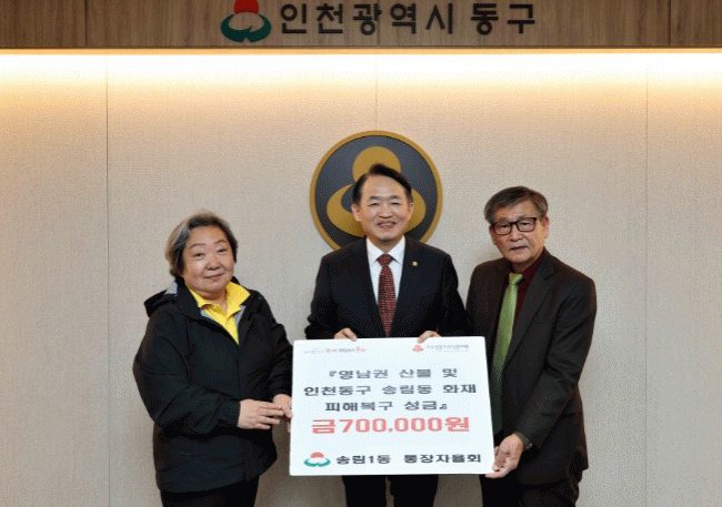 [NWS¹æ¼Û=Çѽ¸ñ ±âÀÚ]ÀÎõ µ¿±¸ ¼Û¸²1µ¿ ÅëÀåÀÚÀ²È¸´Â Áö³­ 10ÀÏ ¿µ³²±Ç »êºÒ ¹× ¼Û¸²µ¿ È­Àç ÇÇÇØ ÁÖ¹ÎÀ» À§ÇÑ ±¸È£¼º±Ý 70¸¸¿øÀ» Àü´ÞÇß´Ù°í ¹àÇû´Ù. ¼Û¸²1µ¿ ÅëÀåÀÚÀ²È¸´Â ¿µ³²±Ç »êºÒ ¹× ¼Û¸²µ¿ È­Àç ÇÇÇØ·Î ÀÎÇÏ¿© ¾î·Á¿òÀ» °Þ´Â ¡¦
