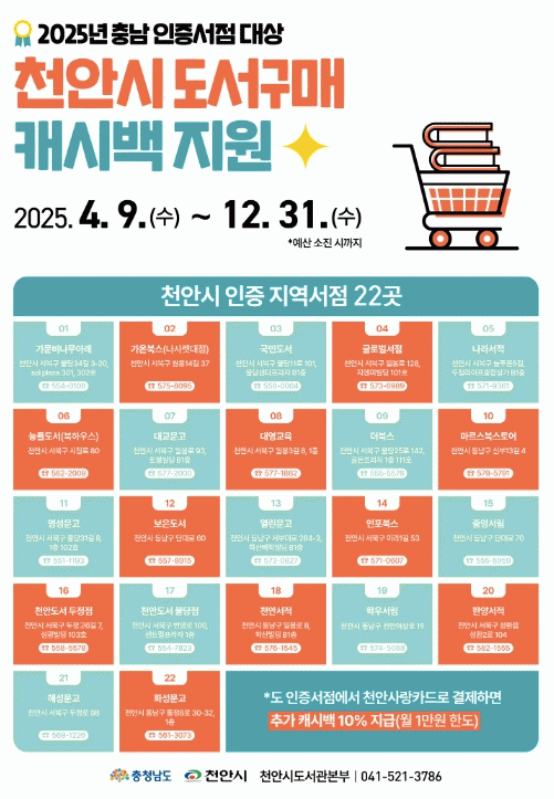 [»çȸ] õ¾È½Ã ¡°µµ¼­ ±¸¸ÅÇϰí 10% ij½Ã¹é ¹ÞÀ¸¼¼¿ä¡± |2025. 04.11