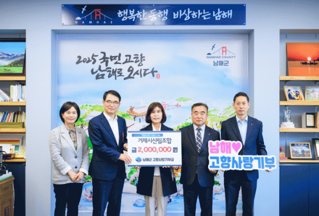 [NWS¹æ¼Û=Çѽ¸ñ ±âÀÚ]³²ÇرºÀº Áö³­ 10ÀÏ °ÅÁ¦½Ã»ê¸²Á¶ÇÕ(Á¶ÇÕÀå Ãß¾ç¾Ç)¿¡¼­ °íÇâ»ç¶û±âºÎ±Ý 200¸¸ ¿øÀ» ±âºÎÇß´Ù°í ¹àÇû´Ù. Ãß¾ç¾Ç Á¶ÇÕÀåÀ» ºñ·ÔÇÑ °ÅÁ¦½Ã»ê¸²Á¶ÇÕ ÀÓÁ÷¿øÀº 2025 °íÇâ»ç¶û ¹æ¹®ÀÇ ÇØ¸¦ ±â³äÇϸç Áö¿ª°æÁ¦ Ȱ¼ºÈ­¸¦ ¡¦