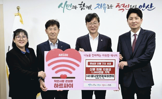[»çȸ] ¾È»ê½Ã, (»ç)²Þ³ª¹«ÀÎÀçÀ°¼º¼¾ÅͷκÎÅÍ ¿µ³² »êºÒ ÇÇÇØ ¼º±Ý ±âŹ¹Þ¾Æ |2025. 04.11