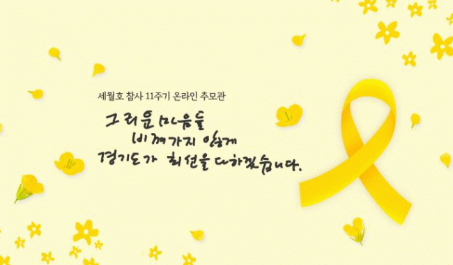 [NWS¹æ¼Û=Çѽ¸ñ ±âÀÚ]°æ±âµµ°¡ ¼¼¿ùÈ£ Âü»ç 11Áֱ⸦ ¸Â¾Æ 4¿ù 11ÀϺÎÅÍ 17ÀϱîÁö Ã߸ð±â°£À» ¿î¿µÇÑ´Ù. Àü °øÁ÷ÀÚ¿Í µµ¹ÎÀÌ ¼¼¿ùÈ£ Âü»ç Èñ»ýÀÚµéÀÇ ¾ÆÇÄÀ» ±â¾ïÇÏ°í °øÀ¯Çϱâ À§ÇØ ÀÌ ±â°£ ¼ö¿ø ±¤±³ µµÃ»»ç¿Í ÀÇÁ¤ºÎ ºÏºÎû»ç¿¡ ¼¼¿ù¡¦