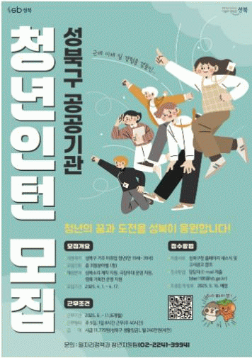 [NWS¹æ¼Û=Çѽ¸ñ ±âÀÚ]¼­¿ï ¼ººÏ±¸°¡ Áö¿ª ³» ¹ÌÃë¾÷ û³â(¸¸ 19¼¼~39¼¼)À» ´ë»óÀ¸·Î û³âÀÎÅÏ »ç¾÷À» ÃßÁøÇÑ´Ù. À̹ø »ç¾÷Àº ¡â¼ººÏ±¸Ã» È«º¸Àü»ê°ú(¼ººÏ¼Ò¸® Á¦ÀÛ Áö¿ø), ¡â²Þºû±ØÀå(±ØÀ幫´ë ¿î¿µ Áö¿ø), ¡â¾Æ¸®¶û½Ã³×¼¾ÅÍ(¿µÈ­ ±âȹÀü¡¦