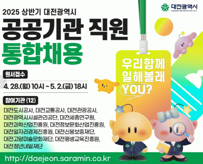 [NWS¹æ¼Û=ÇãÀº¼­ ±âÀÚ]´ëÀü½Ã°¡ À¯´ÉÇÑ ÀÎÀç È®º¸¸¦ À§ÇØ 2025³â »ó¹Ý±â »êÇÏ °ø°ø±â°ü Á÷¿ø ÅëÇÕä¿ëÀ» ½Ç½ÃÇÑ´Ù. À̹ø ä¿ë¿¡´Â ´ëÀüµµ½Ã°ø»ç¸¦ ºñ·ÔÇÑ 12°³ °ø°ø±â°üÀÌ Âü¿©Çϸç, ÀϹÝÁ÷ 67¸í, °ø¹«Á÷ 43¸í µî ÃÑ 110¸íÀ» ¼±¹ßÇÒ °èȹ¡¦