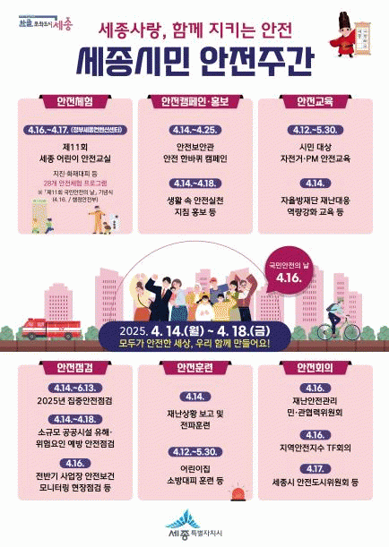 [»çȸ] ÇÔ²² ÁöŰ´Â ¾ÈÀü '¼¼Á¾½Ã¹Î ¾ÈÀüÁÖ°£' ¿î¿µ |2025. 04.11