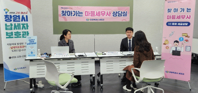 [NWS¹æ¼Û=Çѽ¸ñ ±âÀÚ]â¿øÆ¯·Ê½Ã´Â 9ÀÏ ÀÇⱸû 2Ãþ ÁßȸÀǽǿ¡¼­ ½Ã¹Î°ú ÀüÅë½ÃÀå »óÀÎ µîÀ» ´ë»óÀ¸·Î ¡®Ã£¾Æ°¡´Â ¸¶À»¼¼¹«»ç »ó´ã½Ç¡¯À» ¿î¿µÇß´Ù. À̳¯ Á¦5±â â¿ø½Ã ¸¶À»¼¼¹«»ç·Î Ȱµ¿ ÁßÀÎ ÀÌÁ¾Áø ¼¼¹«»ç, ±è¼ºÇÑ ¼¼¹«»ç¿Í â¿ø¡¦