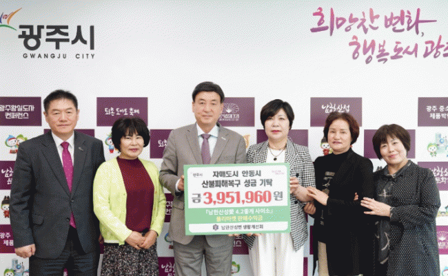 [NWS¹æ¼Û=Çѽ¸ñ ±âÀÚ]±¤Áֽà ³²Çѻ꼺¸é »ýȰ°³¼±È¸´Â 10ÀÏ ÀڸŰῬµµ½ÃÀÎ °æºÏ ¾Èµ¿½ÃÀÇ ´ë±Ô¸ð »êºÒ ÇÇÇØ º¹±¸¸¦ µ½±â À§ÇØ ¼º±Ý 395¸¸1õ960¿øÀ» ±âŹÇß´Ù. À̹ø ¼º±ÝÀº Áö³­ 2ÀÏ ¿­¸° ¡®³²Çѻ꼺äñ 4¡¤2ÁÁ°Ô »çÀ̼ҡ¯ »ç¶û ³ª´® ¡¦