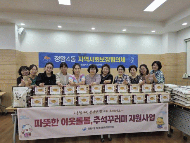 [NWS¹æ¼Û=Çѽ¸ñ ±âÀÚ]½ÃÈï½Ã Á¤¿Õ4µ¿ Áö¿ª»çȸº¸ÀåÇùÀÇü´Â Áö³­ 9¿ù 17ÀÏ Ãß¼®À» ¸Â¾Æ °ü³» Ãë¾à °¡±¸ 30°¡±¸¿¡ Ãß¼® ²Ù·¯¹Ì¸¦ Àü´ÞÇϸç ÀÌ¿ô»ç¶ûÀ» ½ÇõÇß´Ù. À̹ø Çà»ç´Â Ãß¼®À» ¸Â¾Æ Ȧ·Î ¿Ü·Ó°Ô ¸íÀýÀ» º¸³»´Â Ȧ¸ö ¾î¸£½Å°ú °æÁ¦¡¦