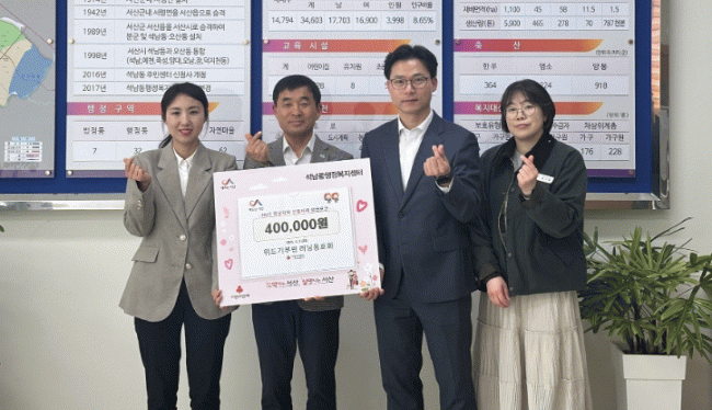 [NWS¹æ¼Û=Çѽ¸ñ ±âÀÚ]¿µ³²Áö¿ª »êºÒ ÇÇÇØ º¹±¸¸¦ À§ÇÑ ¼®³²µ¿ °ü³» ±â°ü.´ÜüÀÇ ¼º±ÝÀÌ ¼®³²µ¿ÇàÁ¤º¹Áö¼¾ÅÍ¿¡ ÀÕµû¶ó ±âŹµÇ¸ç Áö¿ª»çȸ¿¡ ÈÆÈÆÇÑ ¿Â±â¸¦ ÀüÇϰí ÀÖ´Ù. Áö³­ 8ÀÏ(È­), À§µå±âºÎ·± ·¯´×µ¿È£È¸(ȸÀå À̶̹ó)´Â ¼®³²µ¿ÇàÁ¤¡¦