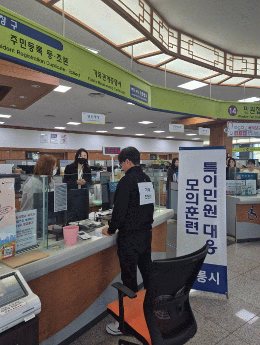 [NWS¹æ¼Û=Çѽ¸ñ ±âÀÚ]°­¸ª½Ã´Â 10ÀÏ ½Ãû Á¾Çչοø½Ç¿¡¼­ ¹Î¿ø´ã´ç °ø¹«¿ø°ú °æÂû µî 30¿© ¸íÀÌ Âü¿©ÇÑ °¡¿îµ¥ ¹Î¿øÀÎ ÀÀ´ë °úÁ¤¿¡¼­ ¹ß»ýÇÒ ¼ö ÀÖ´Â ºñ»ó»óȲ¿¡ ´ëºñÇÑ ÇÕµ¿ ¸ðÀÇÈÆ·ÃÀ» ½Ç½ÃÇÑ´Ù. À̹ø »ó¹Ý±â ¸ðÀÇÈÆ·ÃÀº Áö³­ 7ÀϺΡ¦