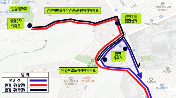 [NWS¹æ¼Û=Çѽ¸ñ ±âÀÚ]¾È¾ç½Ã°¡ ¿À´Â 21ÀÏ Ã¹Â÷ºÎÅÍ ¸¶À»¹ö½º 10-2¹ø ³ë¼±ÀÇ Á¾Á¡À» ¾È¾ç5µ¿ÀÇ ¼º¿ø5Â÷¾ÆÆÄÆ®±îÁö ¿¬ÀåÇÑ´Ù°í 18ÀÏ ¹àÇû´Ù. ¼º¿ø5Â÷¾ÆÆÄÆ® ÀÏ¿ø ÁֹεéÀº ¹ö½º Á¤·ùÀåÀÌ ´Ù¼Ò ¶³¾îÁ® ÀÖ¾î ÃâÅð±Ù, ÅëÇÐ, º´¿ø Áø·á µî ÀÏ¡¦