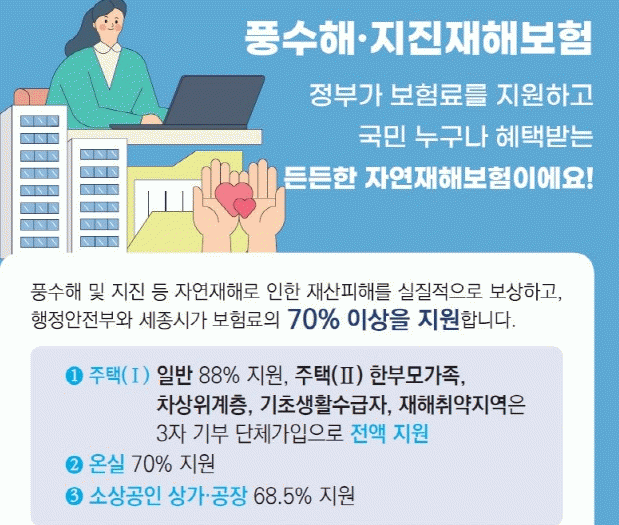 [NWS¹æ¼Û=Çѽ¸ñ ±âÀÚ]¼¼Á¾Æ¯º°ÀÚÄ¡½Ã°¡ °¢Á¾ ÀÚ¿¬Àç³­À¸·ÎºÎÅÍ ½Ã¹ÎµéÀÇ Àç»ê ÇÇÇØ¸¦ º¸»óÇϴ dz¼öÇØº¸Çè·á¸¦ Áö¿ø ÁßÀ̶ó°í 10ÀÏ ¹àÇû´Ù. dz¼öÇØº¸ÇèÀº ÅÂdz¡¤È£¿ì¡¤´ë¼³¡¤°­Ç³¡¤ÁöÁø µî ÀÚ¿¬ÀçÇØ ÇÇÇØ¸¦ ÀÔÀº ½Ã¹Îµé¿¡°Ô Çö½ÇÀû º¸»ó¡¦
