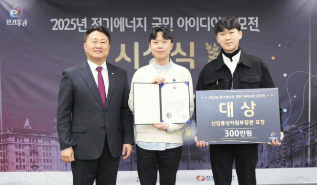 [NWS¹æ¼Û=Çѽ¸ñ ±âÀÚ]°æ»ó±¹¸³´ëÇб³(GNU) IT°ø°ú´ëÇÐ Àü±â°øÇаú ÇлýµéÀÌ ´ëÇÑÀü±âÇùȸ, Çѱ¹Àü·Â°ø»ç°¡ ÁÖÃÖÇÏ°í »ê¾÷Åë»óÀÚ¿øºÎ°¡ ÈÄ¿øÇÑ ¡®2025³â Àü±â¿¡³ÊÁö ±¹¹Î ¾ÆÀ̵ð¾î °ø¸ðÀü¡¯¿¡¼­ ´ë»ó(»ê¾÷Åë»óÀÚ¿øºÎ Àå°ü»ó)À» ¼ö»óÇß´Ù.¡¦