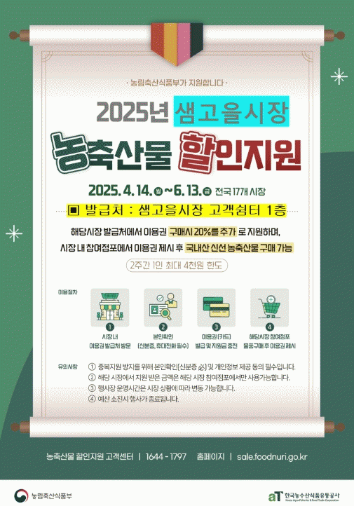 [»çȸ] Á¤À¾ »ù°íÀ»½ÃÀå, 14ÀϺÎÅÍ ±¹»ê ³óÃà»ê¹° 20% ÇÒÀÎ Çà»ç ½ÃÀÛ |2025. 04.10