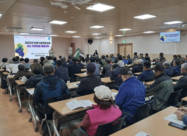 [NWS¹æ¼Û=Çѽ¸ñ ±âÀÚ]Æ÷õ½Ã´Â Áö³­ 9ÀÏ ³ó¾÷±â¼ú¼¾ÅÍ ´ë°­´ç¿¡¼­ °ü³» Æ÷µµ Àç¹è 100¿© ³ó°¡¸¦ ´ë»óÀ¸·Î ¡®Æ÷µµ Àú¿ÂÇÇÇØ ¿¹¹æ ¹× Àç¹è±â¼ú ±³À°¡¯À» ½Ç½ÃÇß´Ù. À̹ø ±³À°Àº ±âÈĺ¯È­·Î º½Ã¶ ÀÌ»ó Àú¿Â Çö»óÀÌ ¹ß»ýÇÔ¿¡ µû¶ó, Æ÷µµ ´«¡¦