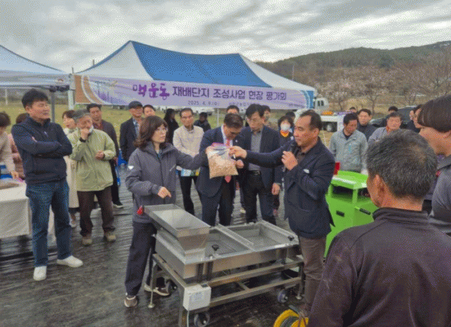 [NWS¹æ¼Û=ÇãÀº¼­ ±âÀÚ]¼­Ãµ±ºÀº ¸Æ¹®µ¿ ¿ø·áÀÇ Áö¿ª ³» ¾ÈÁ¤ÀûÀÎ »ý»ê ±â¹Ý ¸¶·ÃÀ» À§ÇØ Á¶¼ºÇÑ Àç¹è´ÜÁö¿¡¼­ ù ¼öÈ®À» ¸Â¾Æ Áö³­ 4¿ù 9ÀÏ ÆÇ±³¸é Àú»ê¸® ÀÏ¿ø¿¡¼­ ÇöÀå Æò°¡È¸¸¦ °³ÃÖÇß´Ù. À̳¯ Æò°¡È¸¿¡´Â ½Ã¹ü ³ó°¡¸¦ ºñ·ÔÇÑ °ü°èÀÚ¡¦