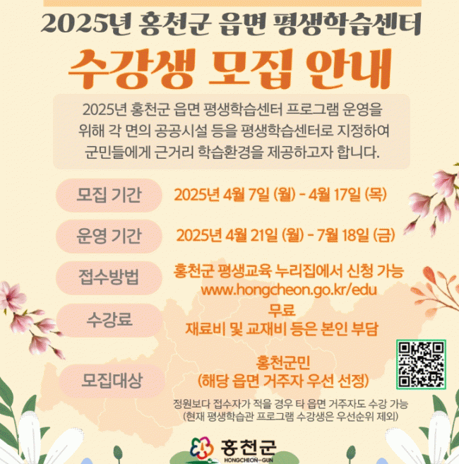 [»çȸ] ȫõ±º, 2025³â À¾¸é Æò»ýÇнÀ¼¾ÅÍ ¼ö°­»ý ¸ðÁý |2025. 04.10