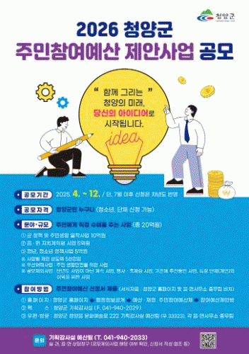 [NWS¹æ¼Û=Çѽ¸ñ ±âÀÚ]û¾ç±ºÀÌ Áö¹æÀçÁ¤ÀÇ Åõ¸í¼º°ú °ÇÀü¼ºÀ» ³ôÀ̰í ÁֹΠÁß½ÉÀÇ ¹ÎÁÖÁÖÀǸ¦ ½ÇÇöÇϱâ À§ÇØ ÁÖ¹ÎÂü¿©¿¹»ê Á¦¾È»ç¾÷À» °ø¸ðÇÑ´Ù°í ¹àÇû´Ù. À̹ø °ø¸ð´Â ¿À´Â 12¿ù 31ÀϱîÁö ÁøÇàµÇ¸ç, 7¿ù ÀÌÀü Á¢¼öµÈ »ç¾÷Àº 2026³â ¿¹¡¦