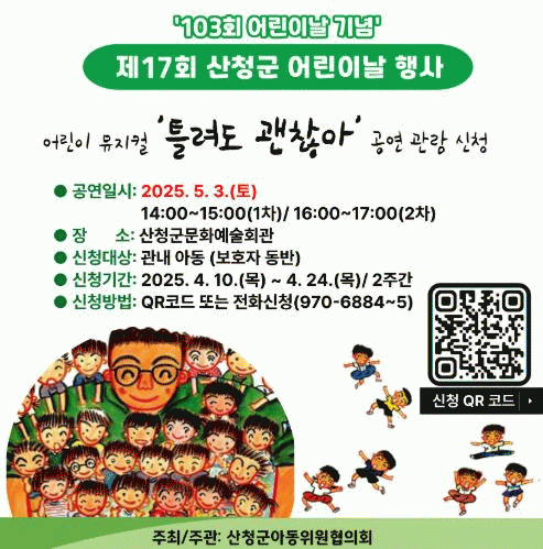 [NWS¹æ¼Û=Çѽ¸ñ ±âÀÚ]»êû±º¾Æµ¿À§¿øÇùÀÇȸ´Â 10ÀÏ¡®Á¦17ȸ »êû±º ¾î¸°À̳¯ Çà»ç¡¯ Âü¿©ÀÚ¸¦ ¸ðÁýÇÑ´Ù°í ¹àÇû´Ù. Á¦103ȸ ¾î¸°À̳¯À» ¸Â¾Æ ³»´Þ 3ÀÏ »êû±º¹®È­¿¹¼úȸ°ü¿¡¼­ °³ÃÖÇÏ´Â À̹ø Çà»ç´Â ¾î¸°ÀÌ Âü¿© ¹ÂÁöÄà ¡®Æ²·Áµµ ±¦Âú¡¦